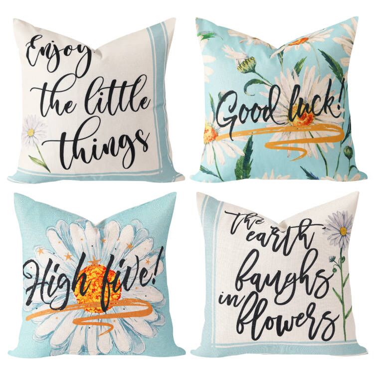 Daisy Themed Decorative Pillow Covers: The decorative pillowcases vivid daisy flower, blue colors, quotes room decor pattern clearly printed on the summer decorative throw pillow covers and will make your room look new and fresh. The design can create a holiday atmosphere that can echo your other easter day decoration, and help you better decorate your room.