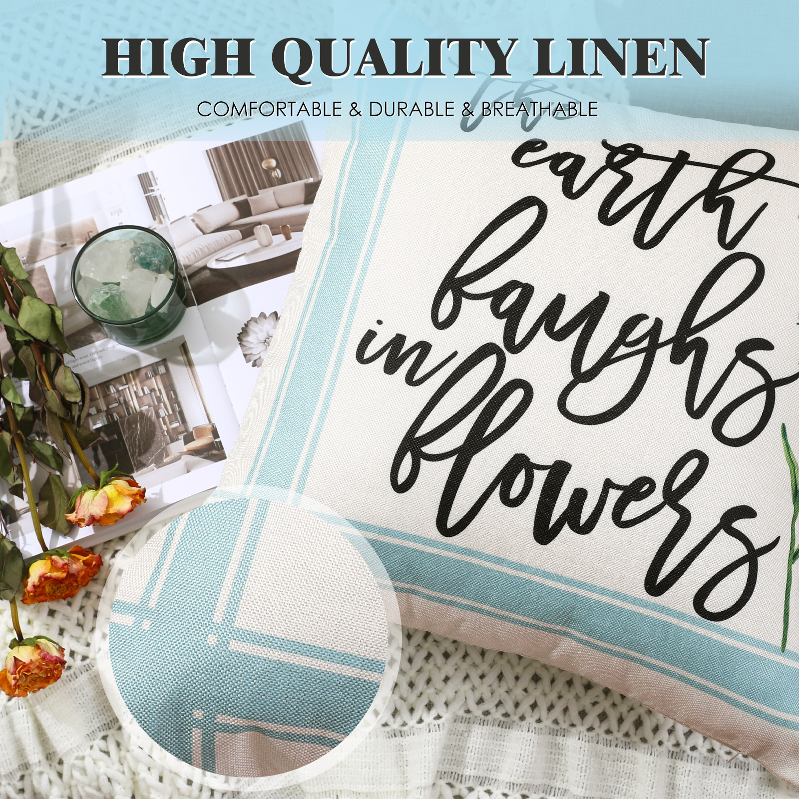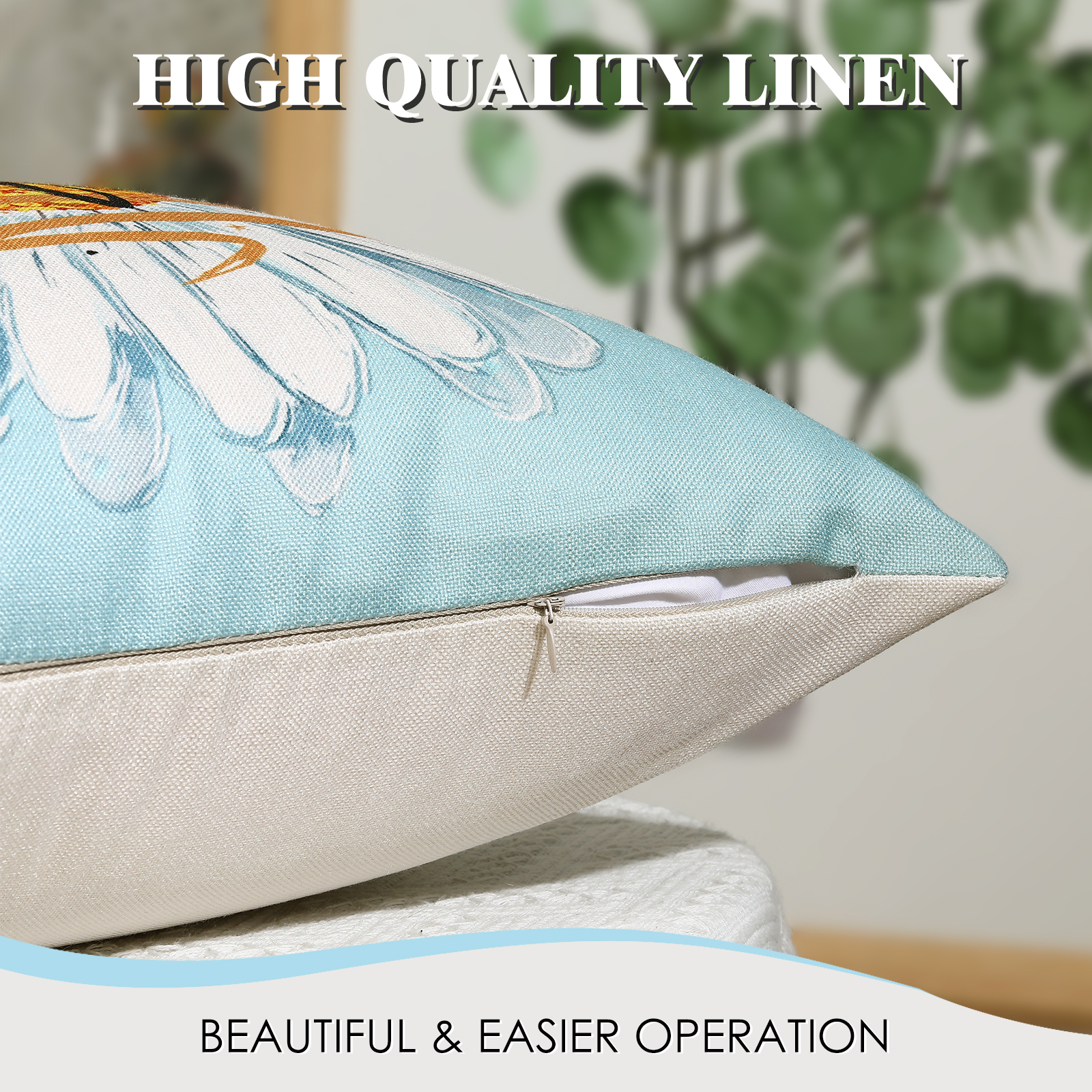 Lanieney Summer Daisy Decorative Throw Pillow Covers 18×18 Inch Set of 4, Floral Sunshine Light Blue Cushion Cases Linen Cloth Decoration for Farmhouse Sofa Home Car Couch